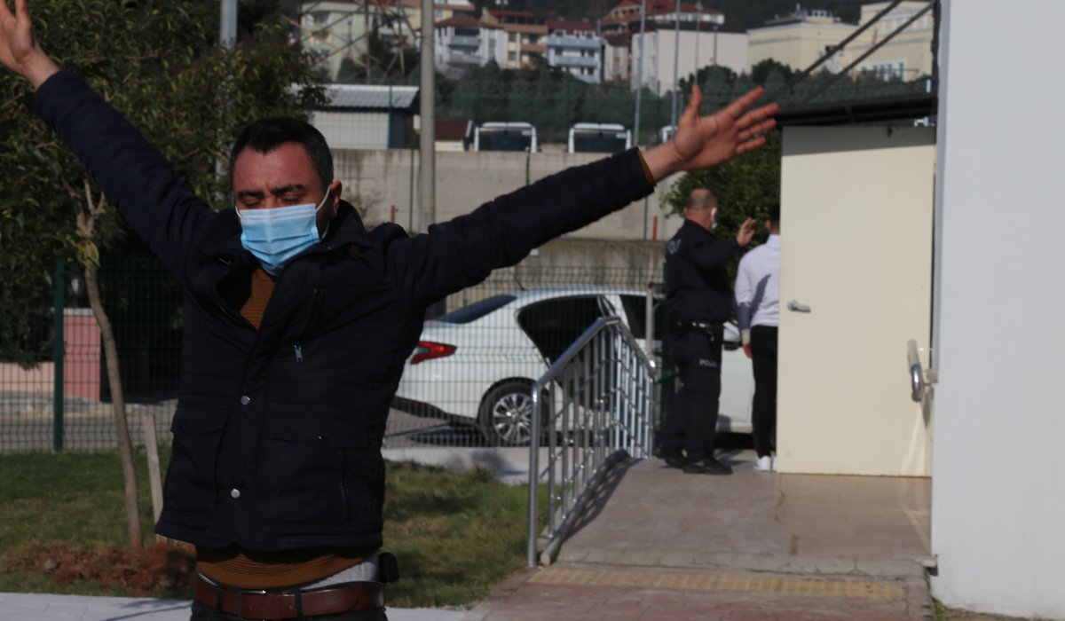 Serçe'nin sevki sırasında bir polis memuru görüntü basın mensuplarının görüntü almasını engellemek amacı ile önlerine geçerek geçerek kollarını açtı.